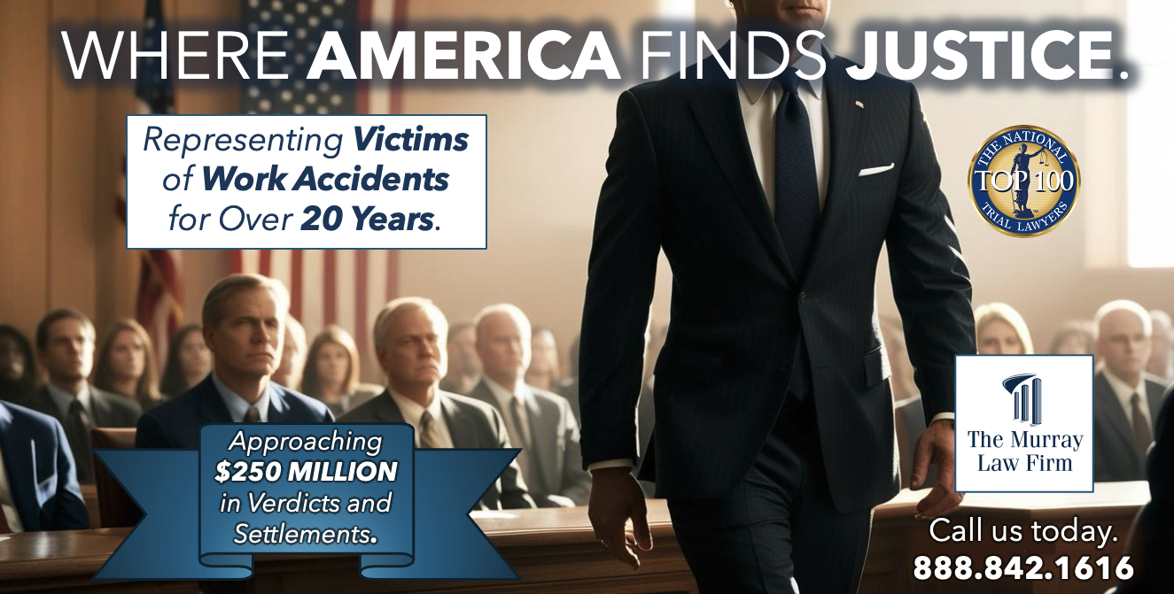 The Murray Law Firm has recovered millions of dollars for individuals who have been hurt, or families whose loved ones have been lost, in a work accident or as a consequence of an unsafe property. We have obtained nearly $250 Million in verdicts and settlements for our Clients, including a $29.25 million dollar verdict for the family of a worker who lost his life at an unsafe property as consequence of a product defect. We offer our legal assistance, if desired.